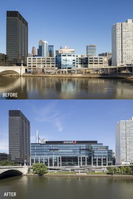 Originally constructed in the early 1920s as a four-story Hudson Motor Car Company fabrication plant, Philadelphia’s 2400 Market Street property was adaptively reused as an office building. Previously known as the Marketplace Design Center, it was reimagined and vertically expanded into a nine-story, mixed-use, Class A office and positioned as a vibrant part of Center City’s riverfront renewal. Now home to Aramark’s corporate headquarters, the building’s updated design incorporates innovation and sustainability features in pursuit of LEED® Gold certification.