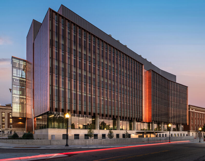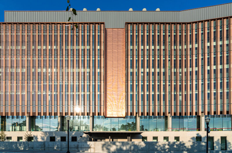 The University of Minnesota’s College of Science and Engineering (CSE) celebrates the opening of its “shiny,” new home at the renovated and expanded Fraser Hall. With views of the Mississippi River and the Twin Cities campus, the nearly 100-year-old building underwent a complete redesign by VJAA and BWBR Architects. For its five-story addition, M.G. McGrath fabricated and installed a custom, sun shade system finished in Copper Anodize by Linetec, and a high-performance curtain wall and entrance doors by EFCO. EFCO and Linetec are both part of Apogee Architectural Metals.